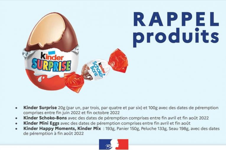 Néanmoins, elle a décidé de procéder au rappel de certains produits de la marque Kinder par prévention. C’est le cas des Kinder Surprise 20g (par un, par trois, par quatre et par six) et 100g avec des dates de péremption comprises entre fin juin 2022 et fin octobre 2022 ; Kinder Schoko-Bons avec des dates de péremption comprises entre fin avril et fin août 2022 ; Kinder Mini Eggs avec des dates de péremption comprises entre fin avril et fin août ; Kinder Happy Moments, Kinder Mix : 193g, Panier 150g, Peluche 133g, Seau 198g, avec des dates de péremption à fin août 2022. « Il est demandé aux personnes détenant ces produits de ne pas les consommer et de les jeter immédiatement. », relaie la préfecture de Mayotte.