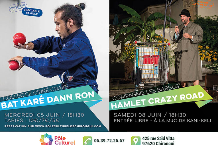 Le Pôle culturel de Chirongui arrive à la fin de sa saison culturelle 2023-2024. Pour cette fin de saison, il est proposé deux spectacles dans la semaine :