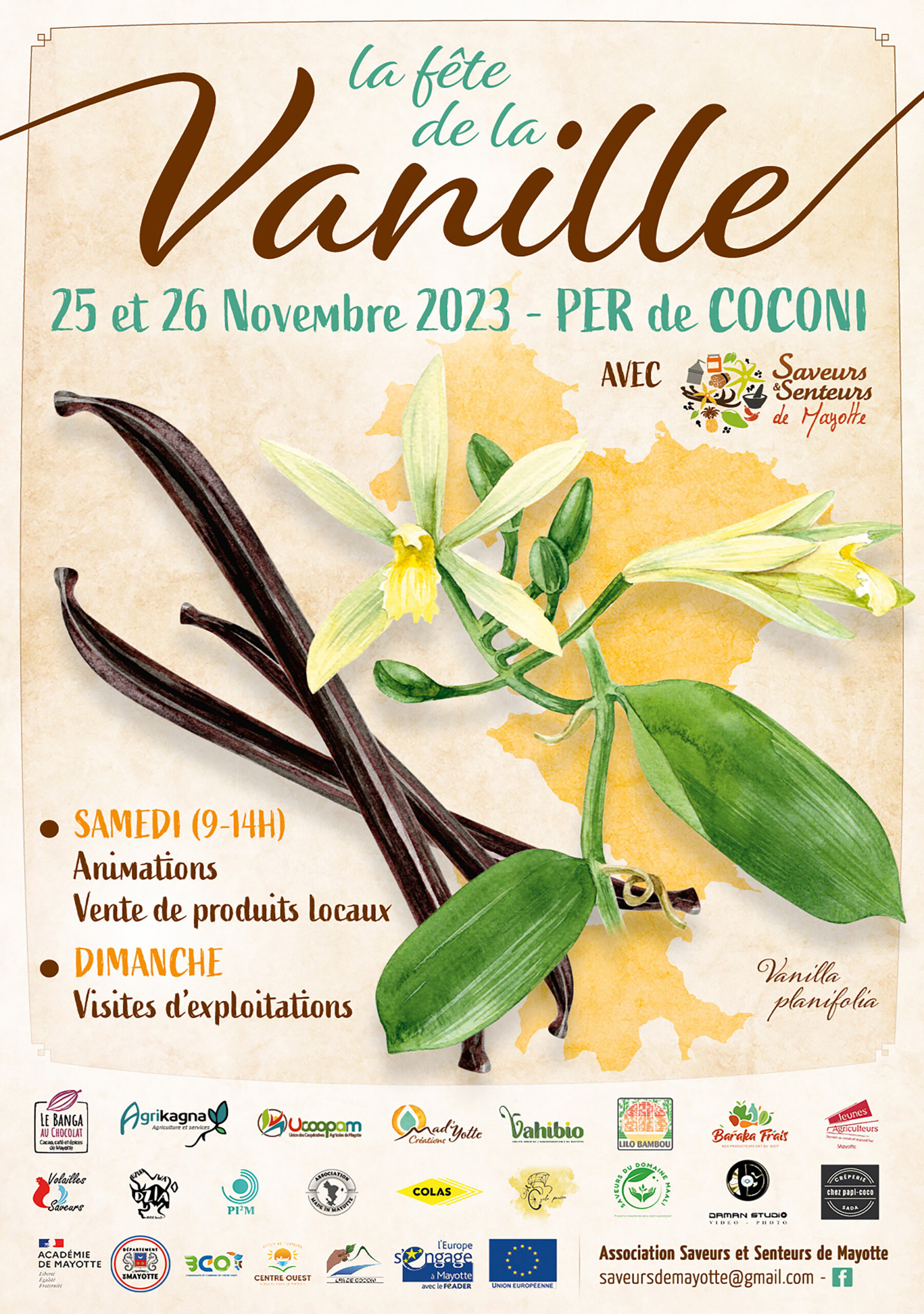 L’association Saveurs et Senteurs de Mayotte organise la troisième édition de la fête de la vanille de Mayotte. La fête de la vanille aura lieu au Pôle d’Excellence Rurale de Coconi le 25 novembre de 9h à 14h.