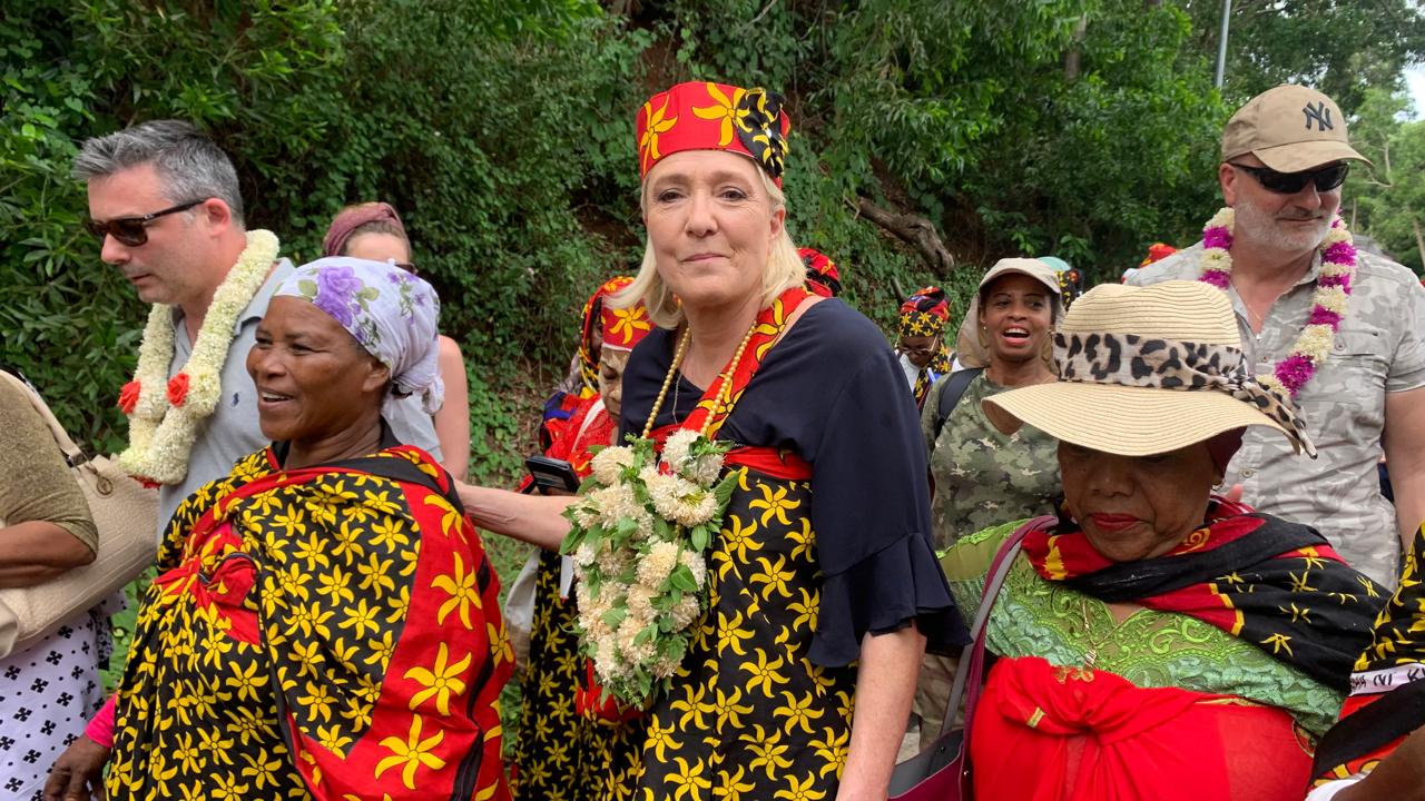 Marine Le Pen vient d’arriver à Chirongui au carrefour de Ngwezi, où se sont rassemblés les représentants et les militants des collectifs de Mayotte, la foule est nombreuse, environ 200 personnes. L’accueil est encore une fois très convivial, la présidente du groupe Rassemblement national à l’Assemblée nationale échange en ce moment même, avec les bagagistes et avec les membres des Collectifs.