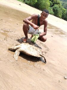 Une tortue échouée sauvée par un agent du Conseil départemental
