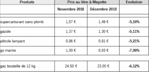 Le prix de vente maximum du carburant et du gaz au 1er décembre 2018