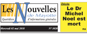Communiqué du journal « Les Nouvelles de Mayotte » après avoir annoncé par erreur le décès du docteur Noël
