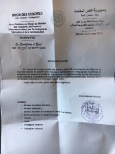 “Il est interdit aux compagnies maritimes et aériennes qui desservent Mayotte, d’embarquer à destination des autres îles soeurs”