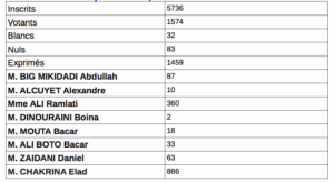 Elections législatives partielle 1er tour : résultats provisoires pour la commune Mtsamboro