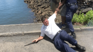Des grévistes se jettent à l’eau pour se “rafraîchir” et empêcher la barge d’accoster (vidéo)