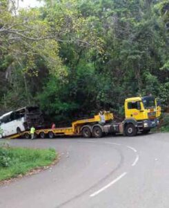 Ongoujou : l’enlèvement d’un bus calciné provoque un énorme embouteillage