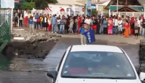 Vidéo de la première barge ce matin qui a fait demi-tour