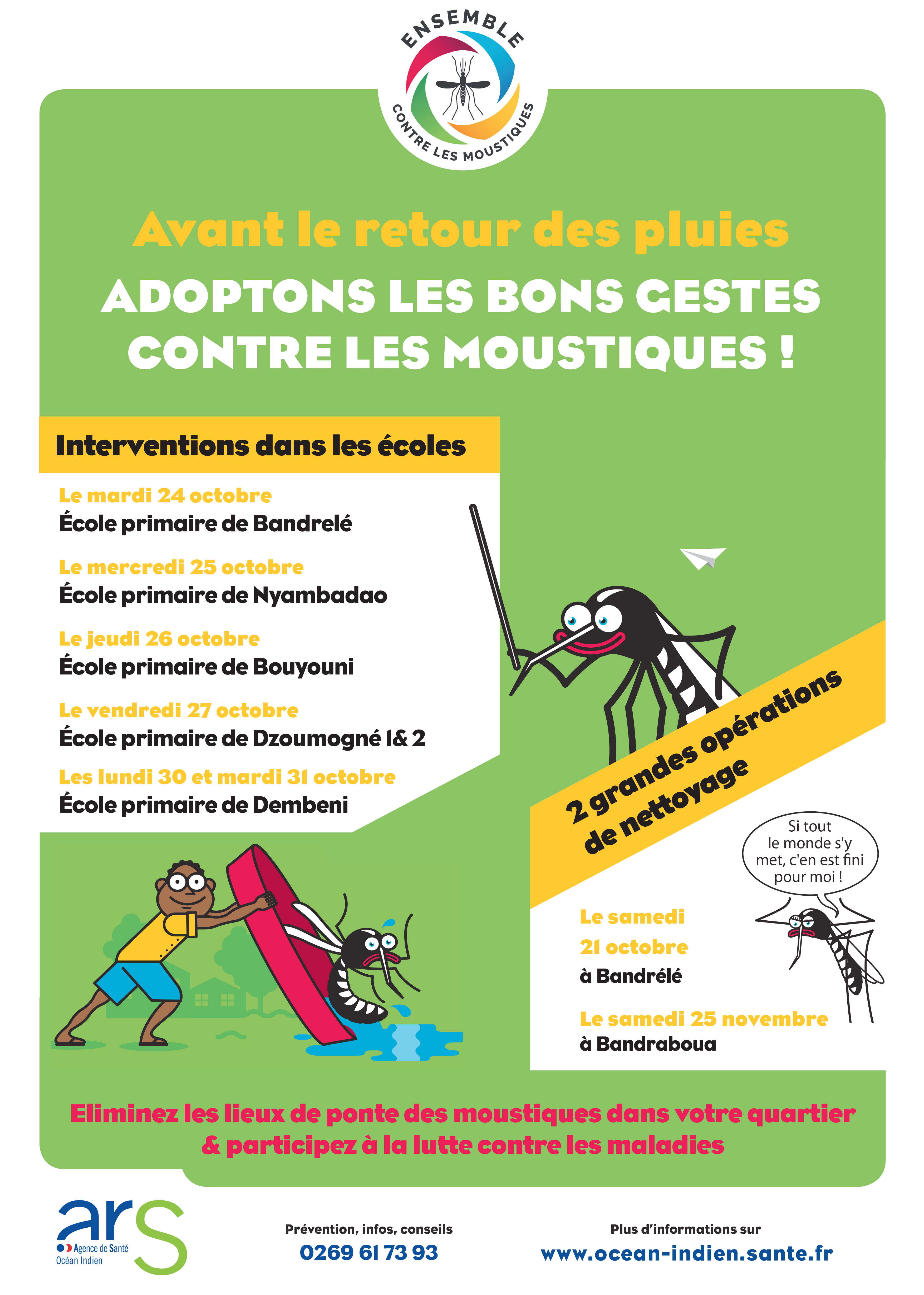À ce titre, des journées de prévention et d’animation autour de la prévention des maladies vectorielles auront lieu afin d’effectuer une sensibilisation auprès des élèves dans les écoles. Par ailleurs, des actions de porte-à-porte seront réalisées par l’ARS OI et les agents communaux dans les prochaines semaines, afin de venir à bout de ce parasite, qui tue chaque année 725 000 personnes à travers le monde.
