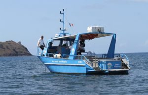 Acquise en 2012, la vedette AITA II, ancien support de plongée, revêtait pour l’occasion une nouvelle robe aux couleurs du Parc naturel marin. Elle permettait alors au tout nouveau service opérations du PNM de mettre en œuvre l’ensemble des actions prévues dans son plan de gestion.