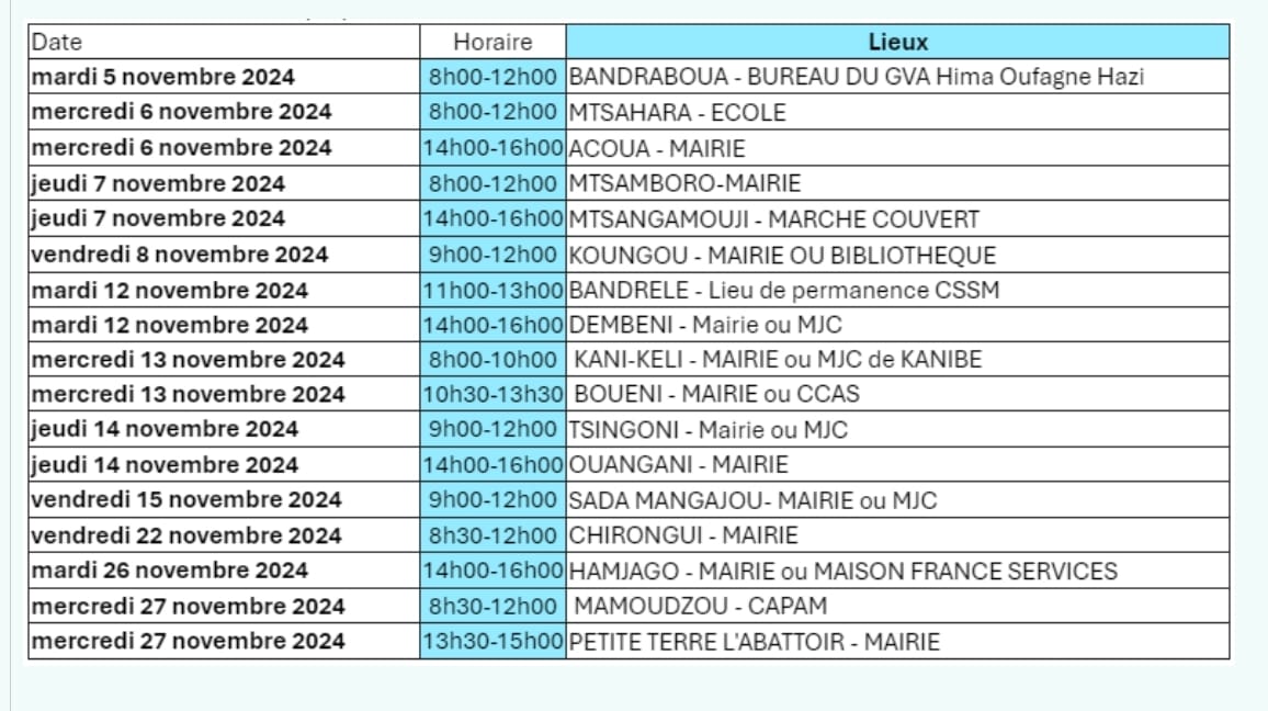 Depuis le 1er janvier 2015, la MSA d’Armorique/Mayotte assure la protection sociale des agriculteurs et de leurs familles. Du 4 au 27 novembre 2024, elle organise 17 réunions d’information sur tout le territoire mahorais. Ces rencontres permettent de faire le point sur les droits sociaux et la situation personnelle des adhérents. La liste des dates, heures et lieux est disponible sur le site mayotte.msa.fr. Il est demandé aux participants d’apporter leur carte Vitale, leur avis d’imposition et leur RIB. La récupération des cartes Vitale s’effectue désormais à la CAPAM, Place Mariage à Mamoudzou, sur rendez-vous au 06 39 68 96 58 ou 06 39 68 40 01.