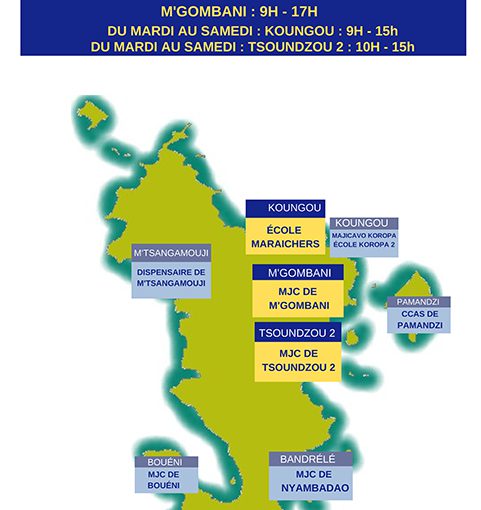 -M’STANGAMOUJI, BOUÉNI, -PAMANDZI, BANDRÉLÉ, KOUNGOU : 9H – 15H
