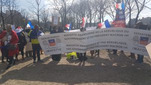 La mobilisation prévue ce jour à 14h place des invalides à Paris, a lieu actuellement en présence du collectif des mahorais en métropole. Sur les nombreuses banderoles brandies dont certaines sont traduites en anglais, il est notamment possible de lire: “Mayotte abandonnée de la République, du gouvernement et du président Macron 1er.” Par ailleurs, les drapeaux français accompagnent les chants qui retentissent dans la froideur de la capitale.