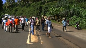 Cette nuit, un échange de bons procédés aurait eu lieu entre la Colas et la Sogéa. En effet, du matériel de construction aurait été acheminé de la carrière ETPC de Koungou par des camions Sogéa afin d’alimenter les chantiers en matières premières. Pour contester cette atteinte au droit de grève, les grévistes Colas ont donc décidé ce matin de rejoindre leurs collègues sur le site de Koungou en marchant pacifiquement.