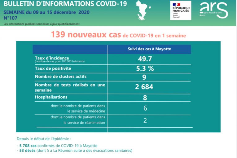 Retrouvez le dernier bulletin d’information Covid-19 à Mayotte, édité par l’ARS pour la semaine du 9 au 15 décembre.