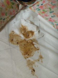 Par ailleurs, ils se plaignent tous de la nourriture qui serait mal cuite, tournée voire moisie. les enfants vomissent et les adultes sont victimes de diarrhées. La nourriture serait immangeable, les enfants ont faim et pleurent. Il n’y aurait par ailleurs plus de café au petit déjeuner car les stocks sont épuisés.