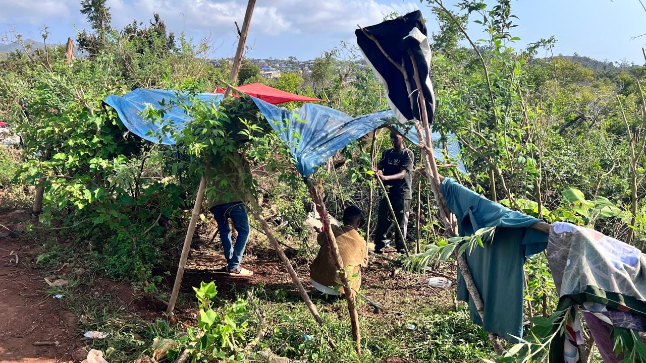 À Tsoundzou, au camp de migrants africains, les pelleteuses ont fait leur travail. Il ne reste plus que des gravats et déchets sur place. Faute de solution, ils sont nombreux à avoir trouvé refuge devant le site de Coallia pour y passer la nuit. Une maman avec son nourrisson explique qu’elle pensait que les mamans et les enfants seraient pris en charge. « On ne nous a pas bien prévenus », témoigne-t-elle. Elle souligne qu’elle ne peut pas rentrer chez elle. « J’ai fui mon pays parce que l’on a tué ma famille. On a besoin de protection. » Elle espère que des solutions seront trouvées pour, au moins, « les mamans et les enfants », et avoir un endroit où il sera possible de dormir et de construire un abri. Sur place, un drone est visible dans le ciel, surveillant surveillant les abords du site et les mouvements de la foule.
