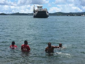 Après quatre jours de grève et au lendemain de l’opération barrage des routes par les transporteurs, depuis ce matin les grévistes mènent une action à la barge. Les forces de l’ordre veillent au grain pour éviter tout blocage des rotations. Dans ces conditions, des grévistes ont décidé de se jeter à l’eau afin de se rafraîchir mais également d’empêcher l’amphidrome d’accoster. Toutes les images ce soir dans votre JTM, en direct dès 19h.