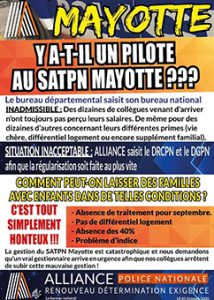 “La gestion du SATPN Mayotte est catastrophique et nous demandons qu’un vrai gestionnaire arrive en urgence afin que nos collègues arrêtent de subir cette mauvaise gestion !” est-il ainsi indiqué.
