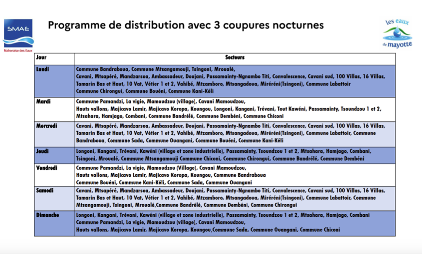 Il a été décidé un 3e tour d’eau nocturne, à compter du lundi 22 mai prochain, par rotation entre les villages et communes, selon le tableau ci-dessous. Cette restriction est progressive, de manière à permettre à la population et aux acteurs du territoire d’anticiper et de s’organiser.