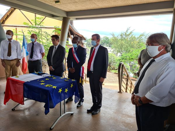 Vendredi matin, le préfet de Mayotte, le recteur et le maire de Mamoudzou ont rendu hommage à Samuel PATY au lycée Bamana, avec les élèves présents dans la cadre du dispositif des “vacances apprenantes”.