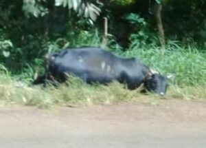 Un zébu mort sur le bord de la route dans le nord de l’île