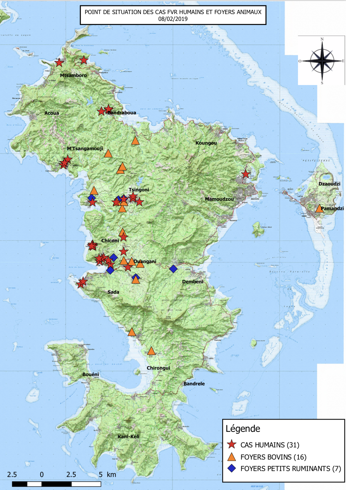 Depuis la découverte d’un premier cas en novembre 2018, la Fièvre de la Vallée du Rift (FVR) continue de circuler sur le département de Mayotte. A ce jour, 31 cas humains de la Fièvre de la Vallée du Rift ont été signalés par le laboratoire du CHM à l’ARS Océan Indien. Zoonose d’origine virale, la FVR touche principalement les ruminants domestiques (bovins, ovins, caprins), mais peut occasionnellement contaminer l’homme. La Préfecture de Mayotte, en collaboration avec l’ARS Océan Indien et la Direction de l’Alimentation, de l’Agriculture et de la Forêt de Mayotte (DAAF) rappelle donc à la population l’importance de mettre en œuvre les recommandations et gestes de prévention pour se protéger de la maladie.