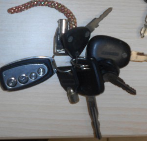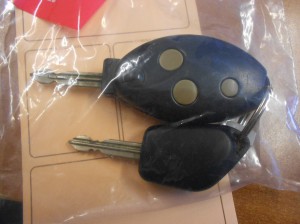 Photo 1 : 1 trousseau de 5 clés, 2 clés d’alarme et un bipeur. (1 clé RENAULT – 1 clé NISSAN)