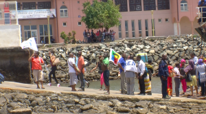 La barge de 10h30 était toujours à quai au moment où la suivante est arrivée sur l’autre quai, les forces de l’ordre se sont positionnées afin de permettre aux passagers de pouvoir débarquer et embarquer au détriment des grévistes.