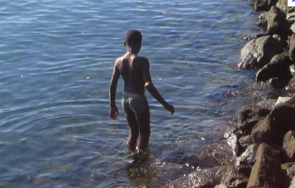 Malgré l’interdiction de baignade pour des raisons de pollution, les enfants de Mamoudzou continuent de se baigner à la pointe Mahabou.