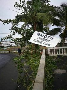 Depuis de nombreuses années, rien ni personne n’était parvenu à faire tomber le panneau de la discorde entre Mayotte et les Comores. Mais, c’était sans compter sur le cyclone Kenneth, les rafales à plus de 180km/h ont eu raison cette fois de l’imposant promontoire.