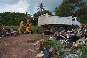 La décharge de M’Bouanatsa, commune de Bouéni, est en train d’être évacuée. Le tracteur forme des tas avant de les charger dans les camions. On ne sait pas si cette évacuation fait suite à la médiatisation de l’affaire ou si une date était déjà prévue entre la mairie et Enzo…
