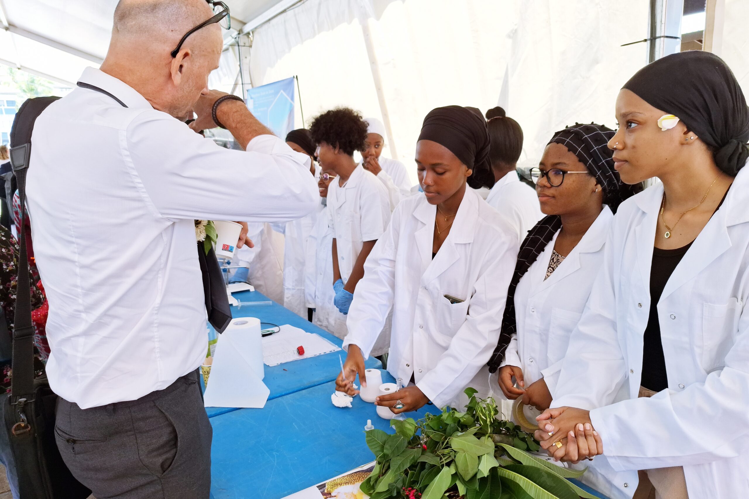 A l’occasion de la 33ème édition de la fête de la science, le village de la science a ouvert ses portes durant deux jours, vendredi et samedi, à Mamoudzou, place de la République. Beaucoup de stands pour accueillir les visiteurs : lunettes 3D pour une immersion marine pour aller à la découverte des baleines, création de vagues artificielles pour mettre en avant l’importance de la barrière de corail et de la mangrove, des microscopes pour découvrir l’univers de l’infiniment petit, atelier volcan, algues, distillation, exploration marine, découverte des baleines, des tortures, et encore pleins d’autres stands. Le succès était au rendez-vous avec beaucoup de jeunes qui se sont intéressés à la science.