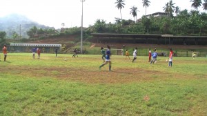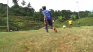 Fin de la pause déshydratation et retour sur la pelouse de Chiconi. Laurent va maintenant travailler en combinant jeu au sol court, jeu au sol long et jeu aérien long. Le but ici est de préparer les joueuses pour le jeu collectif qui a pour but d’épuiser l’adversaire et de renverser le déroulement d’une action. Les centres ou passes en transversale sont pour l’entraîneur un moyen d’asphyxier l’adversaire en l’obligeant à courir derrière le ballon et par la même occasion une manière de le surprendre. Et pour cela il mettra l’accent sur la prise de renseignements, la joueuse doit d’abord lever les yeux et chercher à connaître la position de sa coéquipière. Les phases de placement, replacement et appels de balle feront aussi parti du menu. C’est toute une palette que les filles devront manipuler et maîtriser en vue d’affronter les futures échéances de la Réunion et de Madagascar.