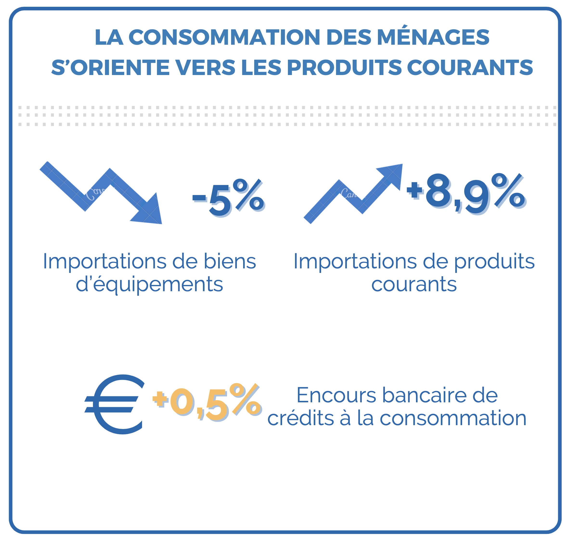 La consommation des ménages s’orientant principalement vers les produits courants, les importations ont augmenté, mais principalement pour ces derniers. Cependant, les importations de biens d’équipement du foyer ont diminué de 5%. Malgré cette tendance, le rapport note une légère amélioration du contexte inflationniste, se rapprochant de l’objectif de la banque centrale européenne.