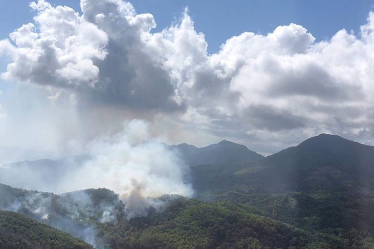 Depuis hier, les sapeurs-pompiers combattent un feu de végétation sur un secteur particulièrement escarpé du Mont Bénara.
