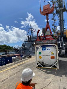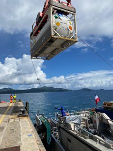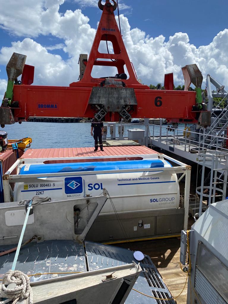 C’est à Longoni que le Champlain a appareillé hier matin. Très rapidement il a déchargé sa cargaison : il a livré au CHM une réserve d’oxygène de 20 000litres, elle est destinée au service de réanimation du CHM qui en a grand besoin. 1 000 litres d’alcool ont été livrés afin de fabriquer du gel hydroalcoolique. Des masques étaient aussi dans le navire