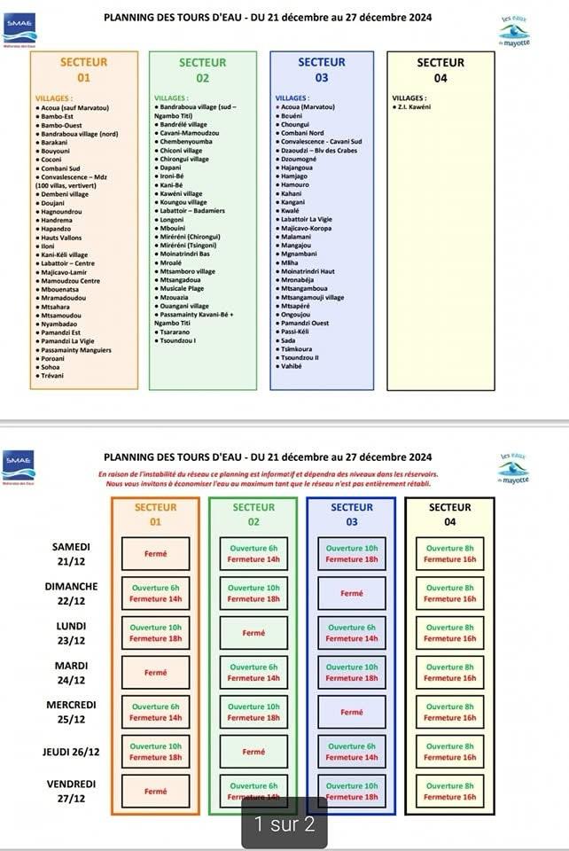 Le réseau d’eau est en train d’être progressivement rétabli par la SMAE. L’agence régionale de santé invite la population pour qui l’eau a été rétablie à faire bouillir l’eau pendant 3 minutes avant de la consommer. L’approvisionnement en bouteilles d’eau de la population est en cours en lien avec les mairies.
