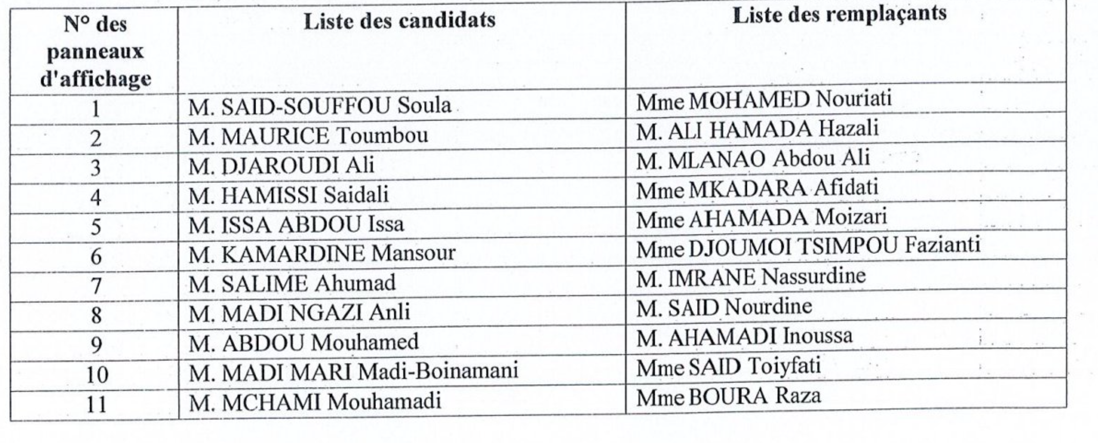 10 candidats avec leurs suppléants pour la circonscription 1 sont enregistrés :