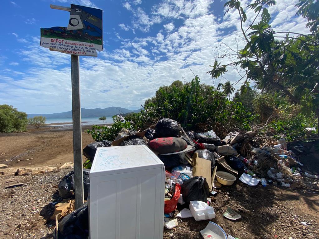 Pendant ce temps là, les encombrants s’accumulent à Tsimkoura, à quelques centaines de mètres du littoral. Machine à laver, sacs poubelles, bouteilles, cuvettes…