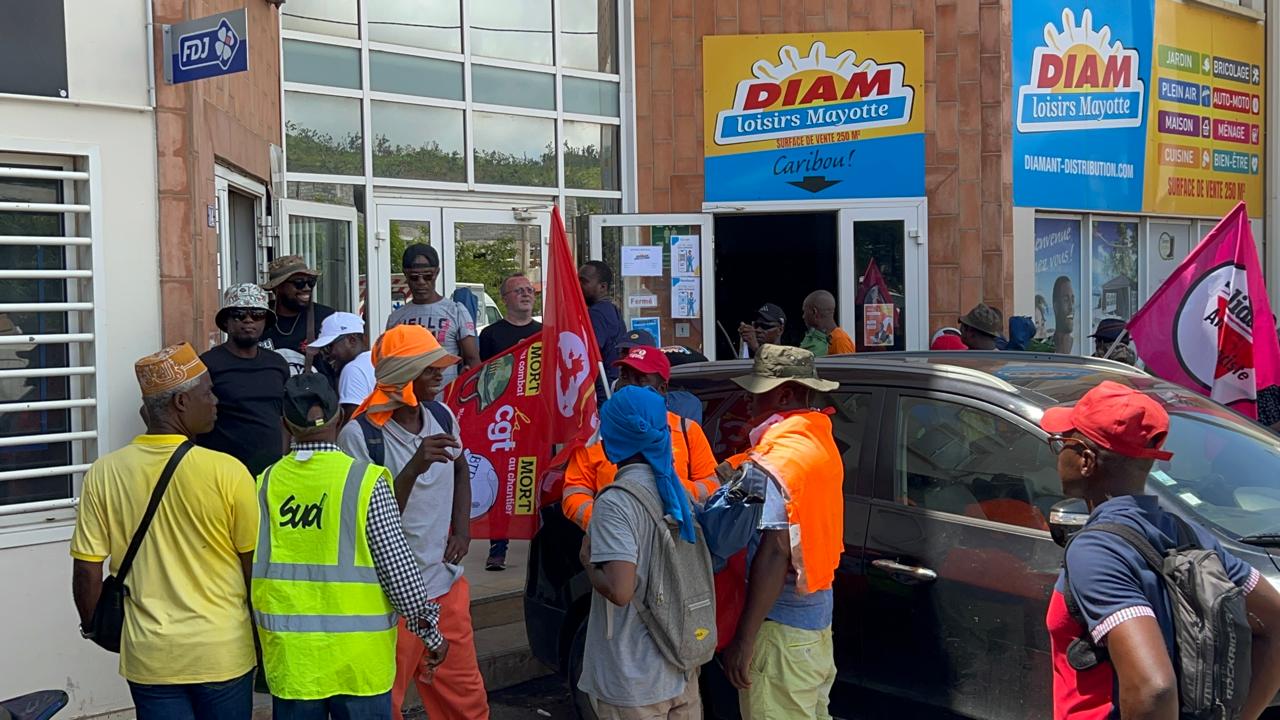 Dans la matinée, les salariés grévistes de La Poste se sont dirigés vers les bureaux de la direction à Kawéni pour être reçus.