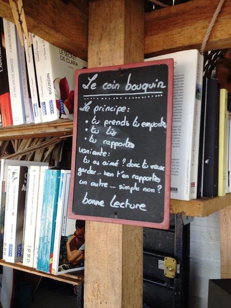 Le concept est très simple : Choisissez un livre à lire sur place ou chez vous, ramenez-le une fois terminé ou remplacez-le par un autre ouvrage de votre collection. Les dons sont également les bienvenus et servent à alimenter le fonds documentaire.