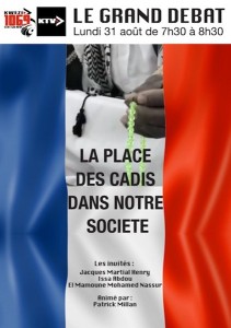 Alors, quelle est aujourd’hui la place des cadis dans notre société ? Jacques Martial HENRY, Issa ABDOU et El Mamoune Mohamed NASSUR débattront sur cette question et tenteront d’y apporter des réponses lors d’une émission spéciale « le grand débat » animée par Patrick Millan, lundi 31 août, de 7h30 à 8h30.