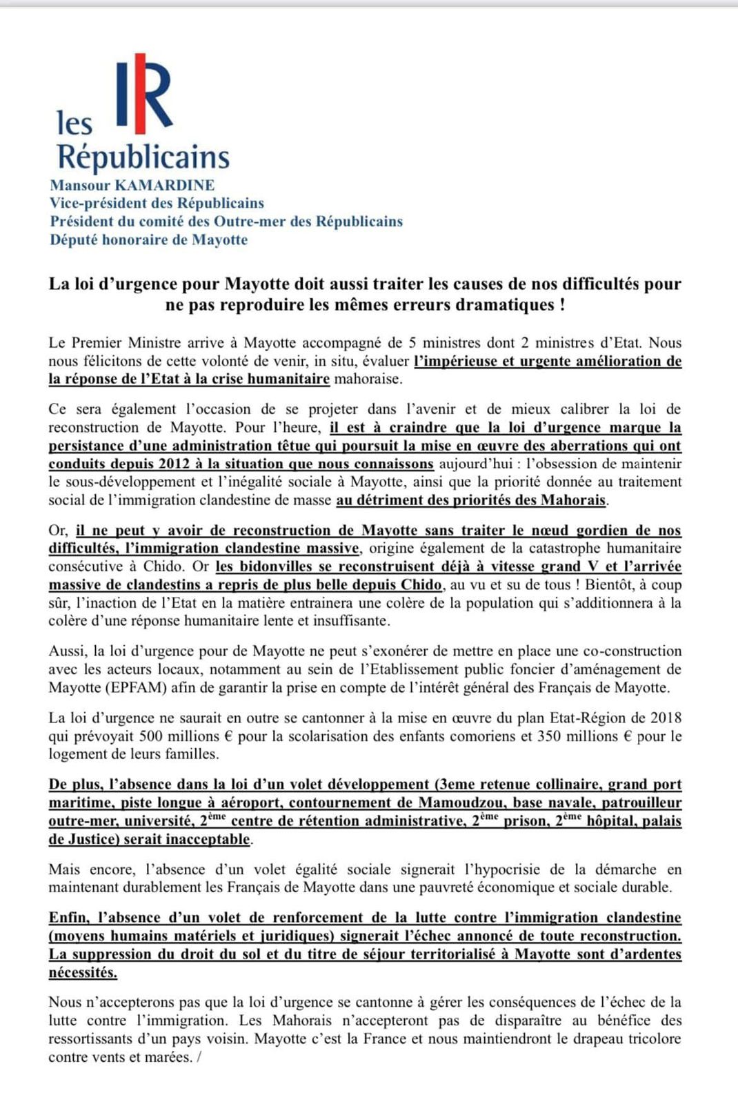 Retrouvez ici l’intégralité du texte de Mansour Kamardine :