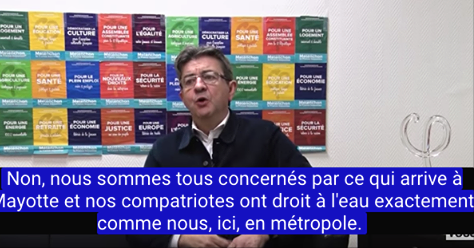 A partir de 3m40 et environ jusqu’à la 7ème minute de sa vidéo, le candidat de la France Insoumise évoque la question de l’eau à Mayotte et surtout, la mauvaise gestion de cette ressource vitale.