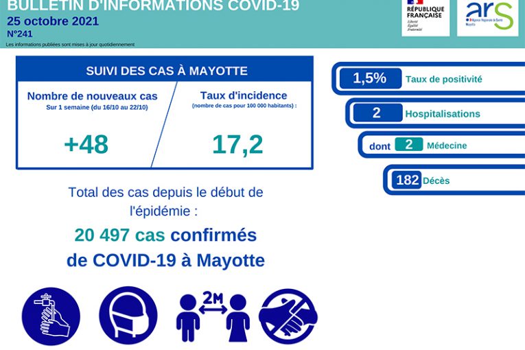 Le dernier point de situation de l’ARS quant à la covid fait état d’une hausse à 48 nouveaux cas pour un taux d’incidence de 17,2 pour 100 000 habitants ; Le taux de positivité remonte aussi à 1,5 % et 2 patients demeurent hospitalisés en médecine.