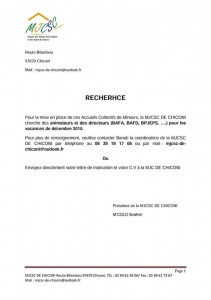 La MJCSC de Chiconi recrute des animateurs(trices) et directeurs(trices) (BAFA, BAFD, BPJEPS…) pour les vacances de décembre 2015.