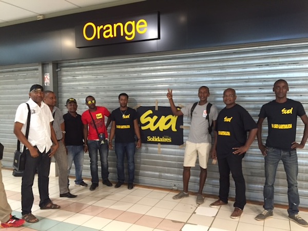 Les salaries grévistes d’orange ont haussé le ton après 3 semaines de grève. Ce matin ils ont bloqué la boutique Orange située à Jumbo Score mais également les services techniques de Kaweni. Ils espèrent ainsi faire bouger la direction avec laquelle le dialogue est rompu. La revendication est toujours la même : une prime “vie chère” de 120 euros par mois.