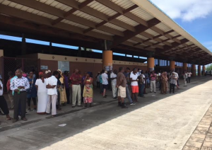 Pour l’instant, une petite trentaine de personnes dont les vendeurs à la sauvette sont sur la Place de la République. La Ministre arrive par la barge piéton.