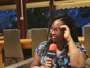 La Porte-Parole du Gouvernement Sibeth Ndiaye au micro de Patrick Millan sur Kwezi TV